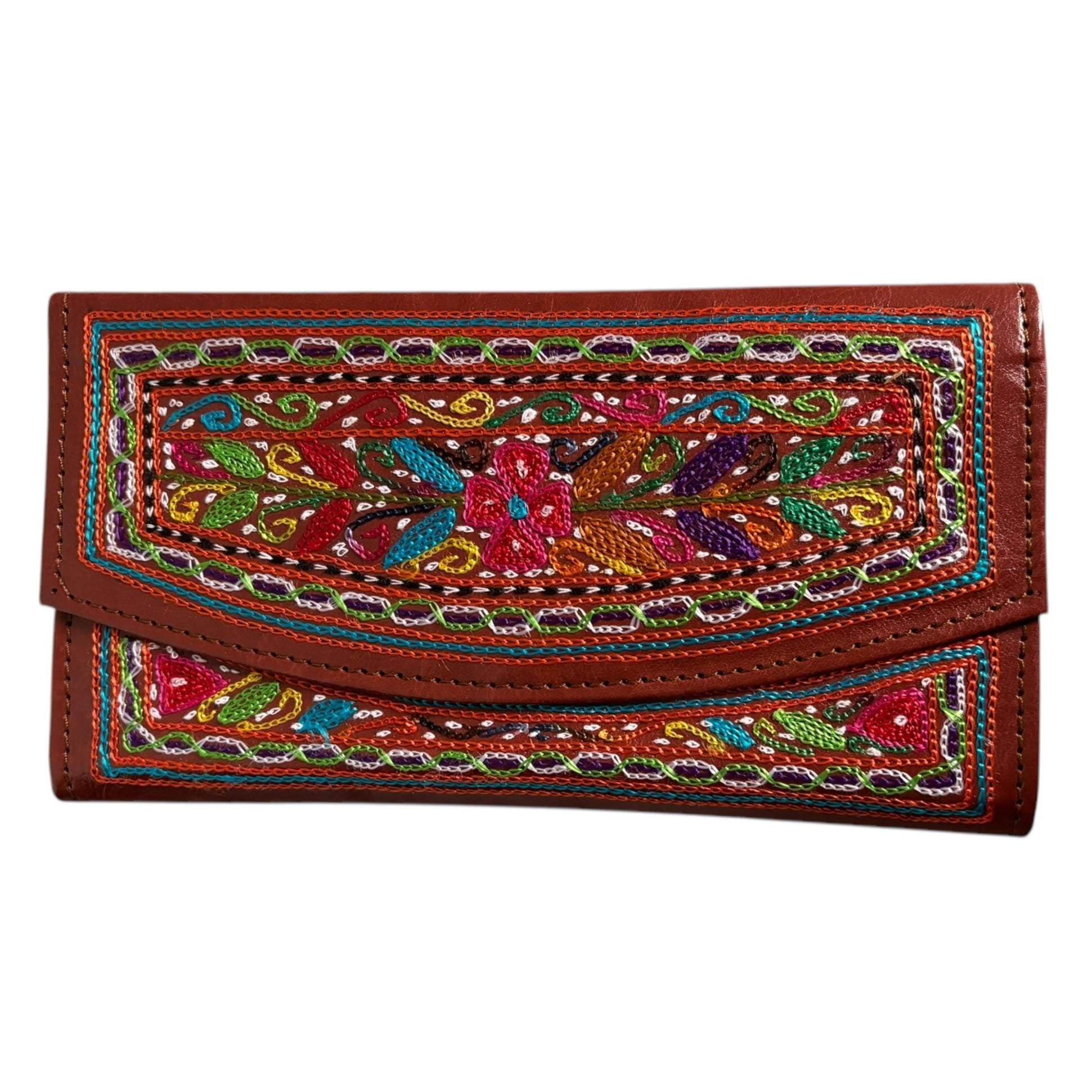 Authentic Balochi Sindhi Handmade Embroidered Mirror Work Leather Clutch Bag Wallets Beautiful Souvenir from Pakistan