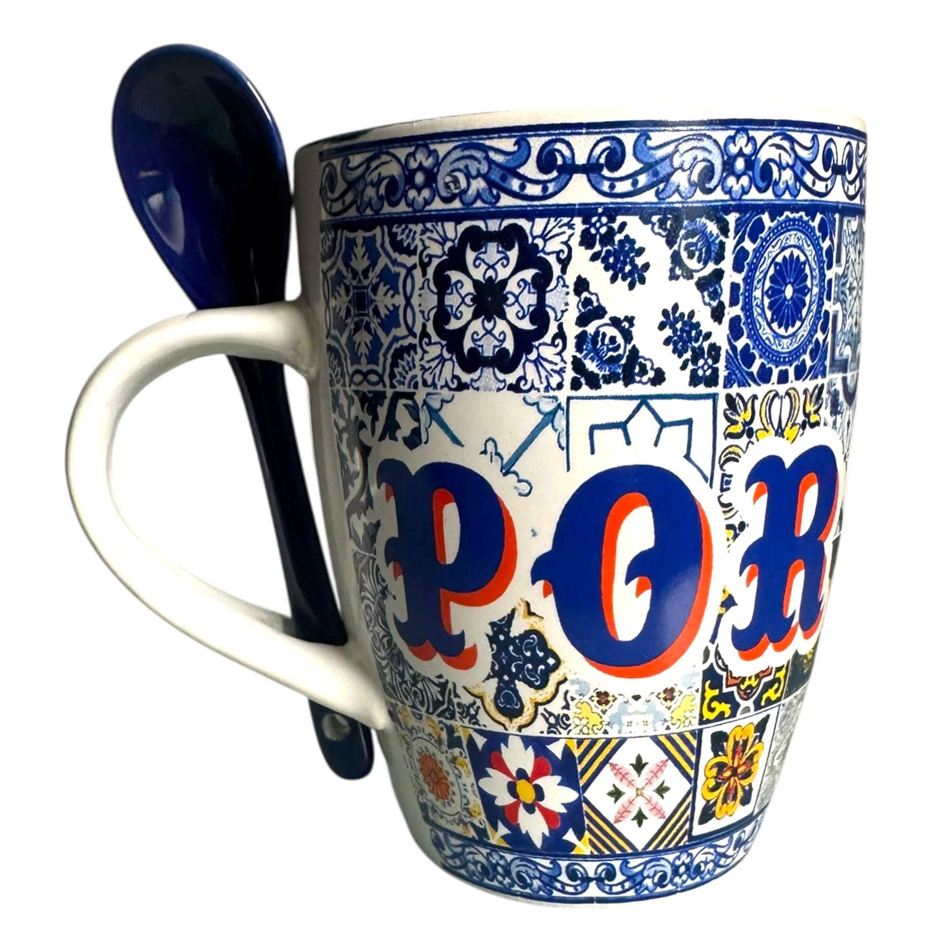 Portugal Azulejo Cup Tea Mug with Spoon in Colorful Azulejo Cardboard Packing - Beautiful Gift from Portugal