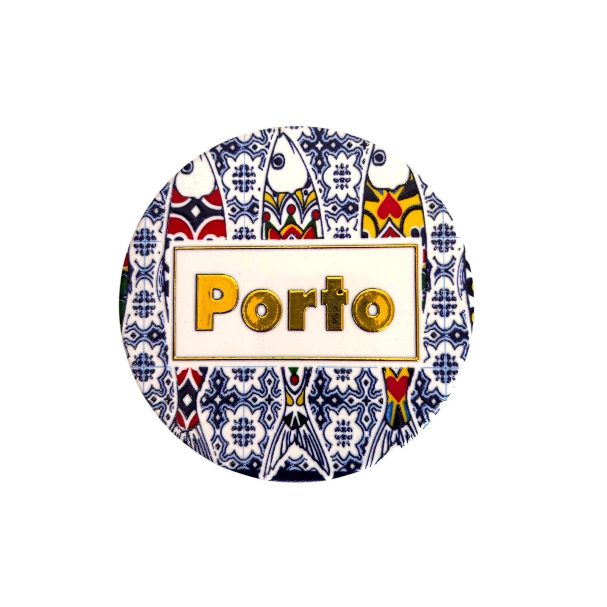 Portugal Ceramic Coasters with Cork Base Heat Resistant - Embedded Portugese Monuments & Azulejo Designs Made in Portugal (Round)