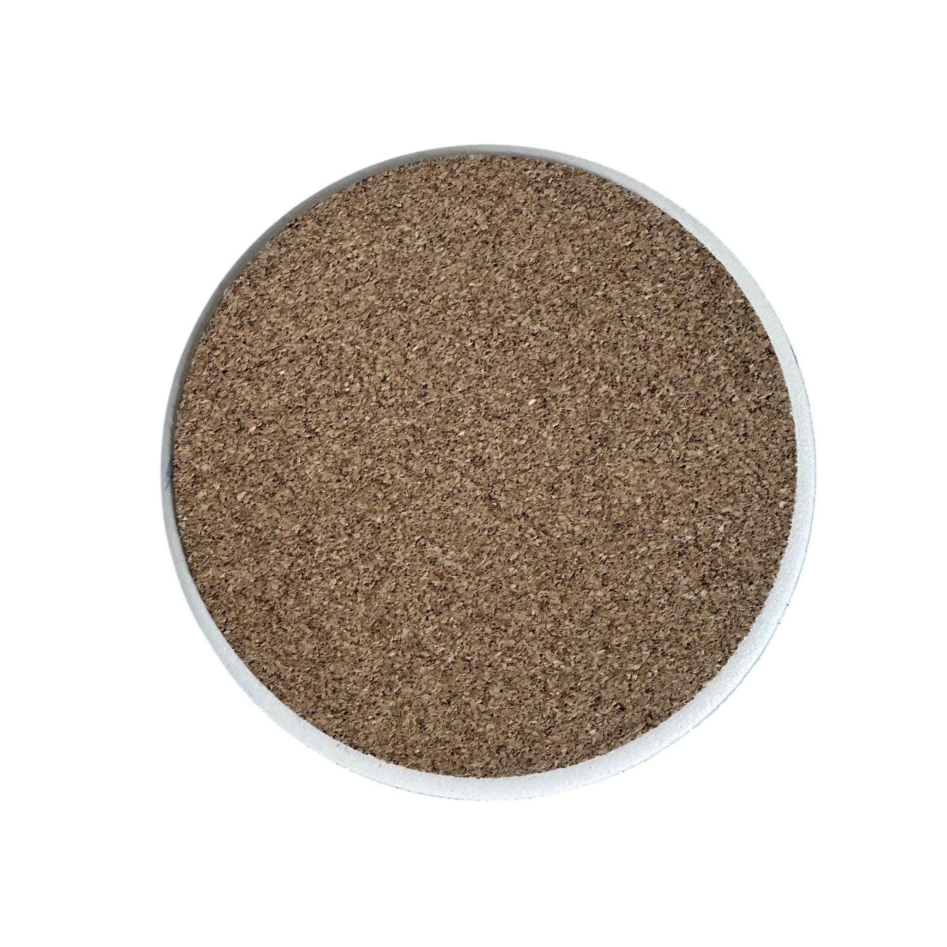 * PROTECTIVE CORK BASE: Each coaster includes a cork bottom that prevents scratches on surfaces while providing stable placement.