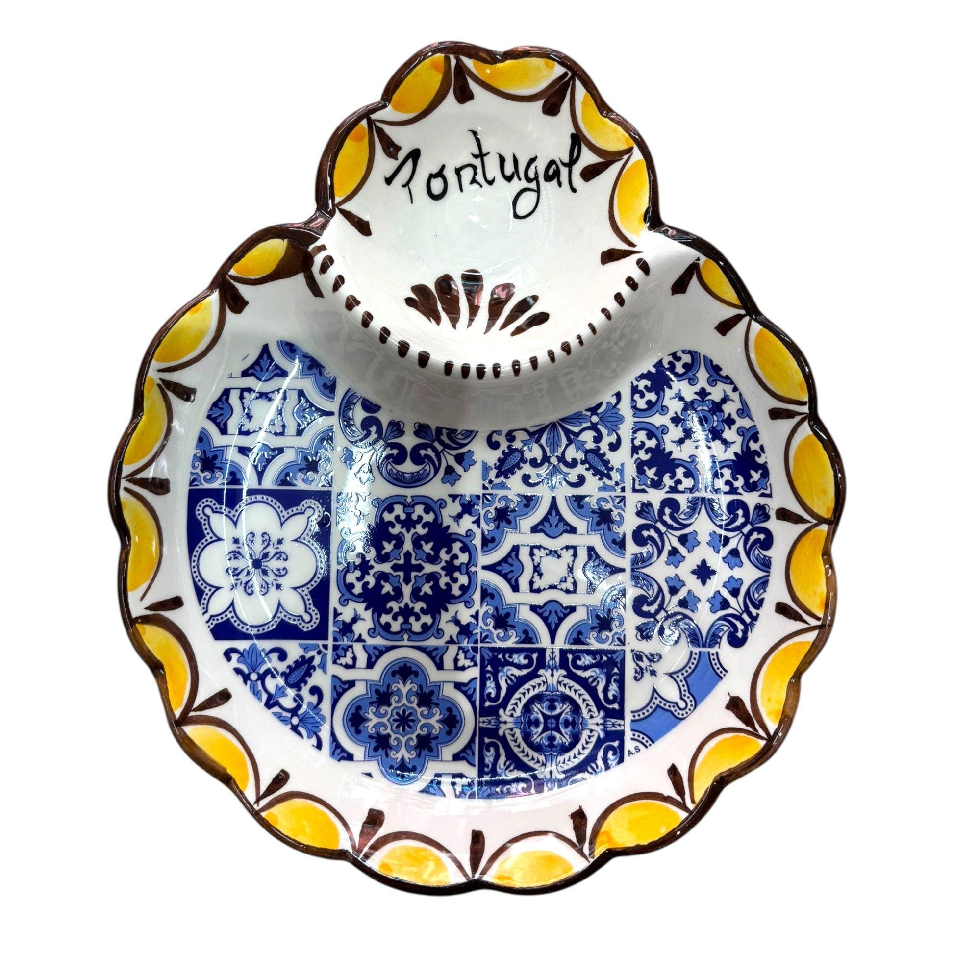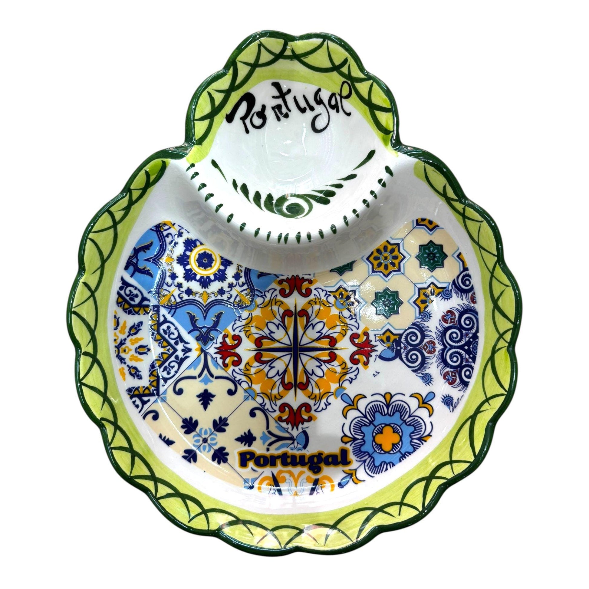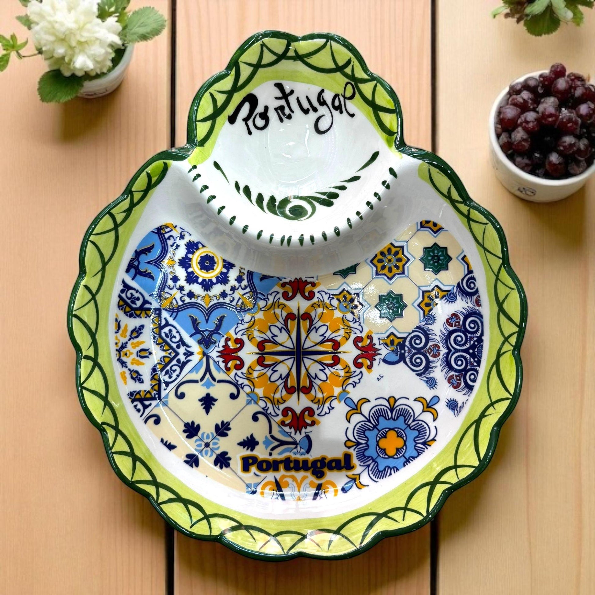 * HANDCRAFTED DESIGN: Authentic Portuguese hand-painted pottery dish featuring beautiful traditional patterns and a unique triangle-shaped pit holder.