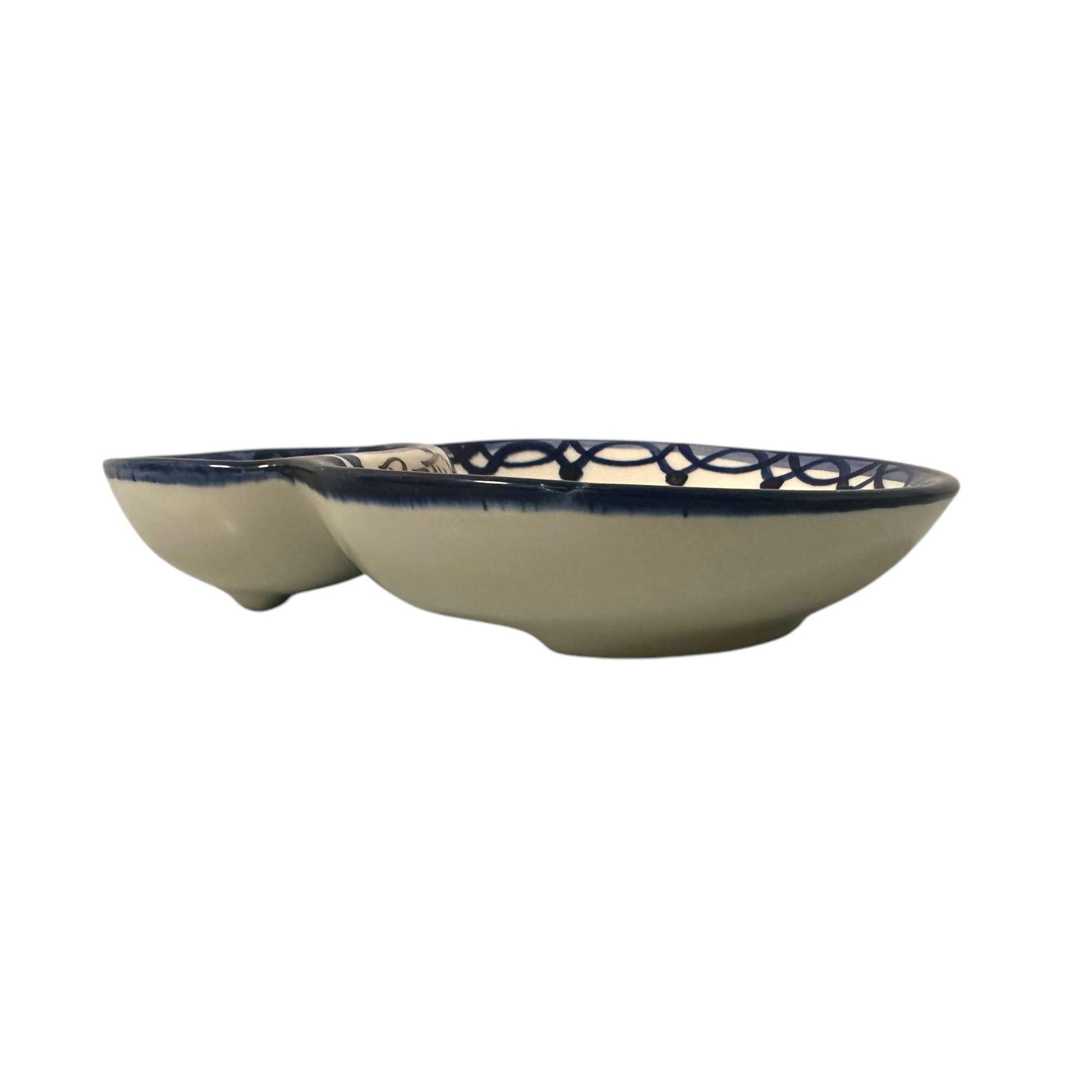 Add a touch of Portuguese artistry to your dining experience with this exquisite hand-painted pottery olive dish. Crafted by skilled artisans, this ceramic tray showcases traditional Portuguese design elements and vibrant colors that make it both functional and decorative. Perfect for serving olives, dips, sauces, or small appetizers, this versatile dish features a dedicated pit holder section for convenience. The beautiful craftsmanship makes it an ideal souvenir or gift, capturing the essence of Portuguese cultural heritage. The tray's durable ceramic construction ensures it's suitable for regular use while maintaining its artistic appeal. Whether used as a serving piece or displayed as decorative pottery, this hand-painted dish brings Mediterranean charm to any table setting. Each piece features unique brushstrokes, making it a special addition to your collection of serving ware.