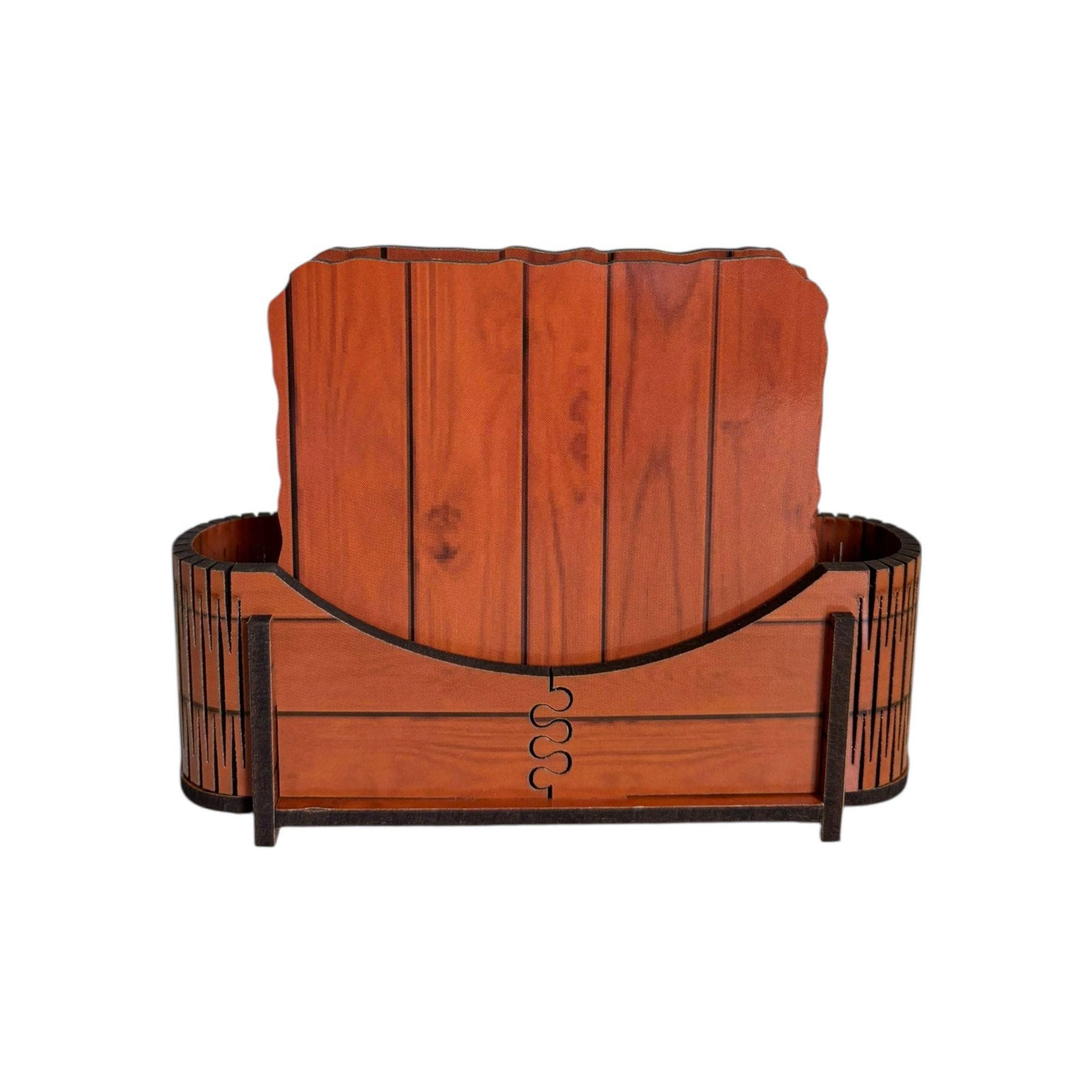 * COMPLETE SET: Includes 6 decorative wooden coasters and a matching display stand for convenient storage and organization.